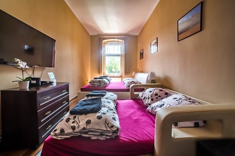 Lejligheden er på 100 m2 og ligger i centrum af Stettin i et af de bedste kvarterer. Lejligheden er total nyrenoveret og indeholder køkken med alt udstyr, moderne badeværelse samt 3 store soveværelser/suites til 4 personer, som hver har egen opholdstue med Smart TV. Stort fælles køkken. Der er dyner, sengetøj og håndklæder til 12 personer. Der er desuden Smart TV (ca. 140 kanaler med næsten 60 kanaler på engelsk og internet applikationer, herunder YouTube) og DVD-afspiller med masser af film på engelsk, dansk, norsk og enkelte på tysk, fransk, italiensk og spansk samt undertekster på forskellige sprog. Der er også trådløs Internet adgang.