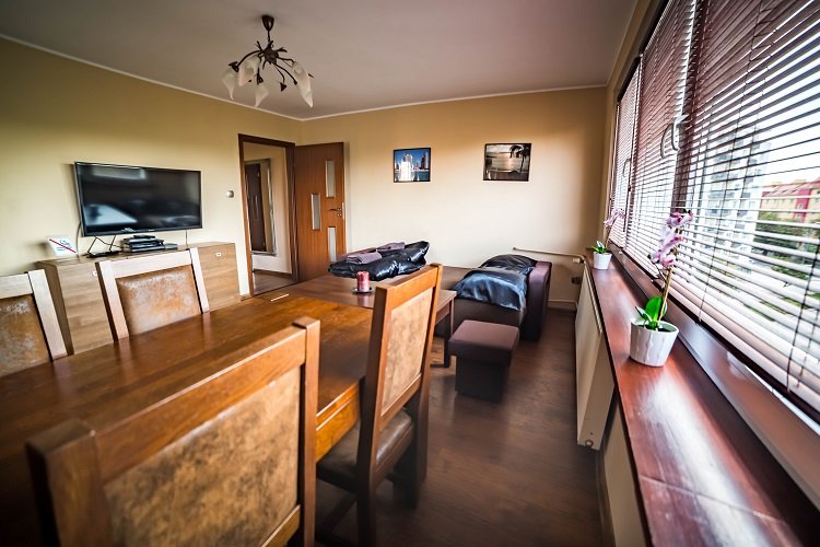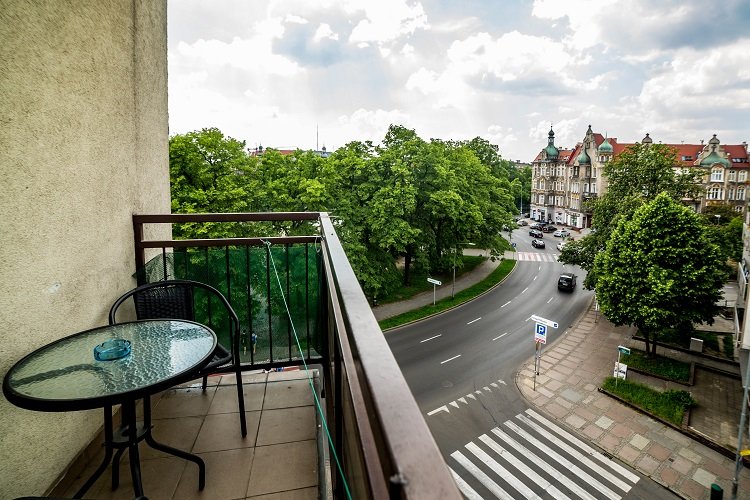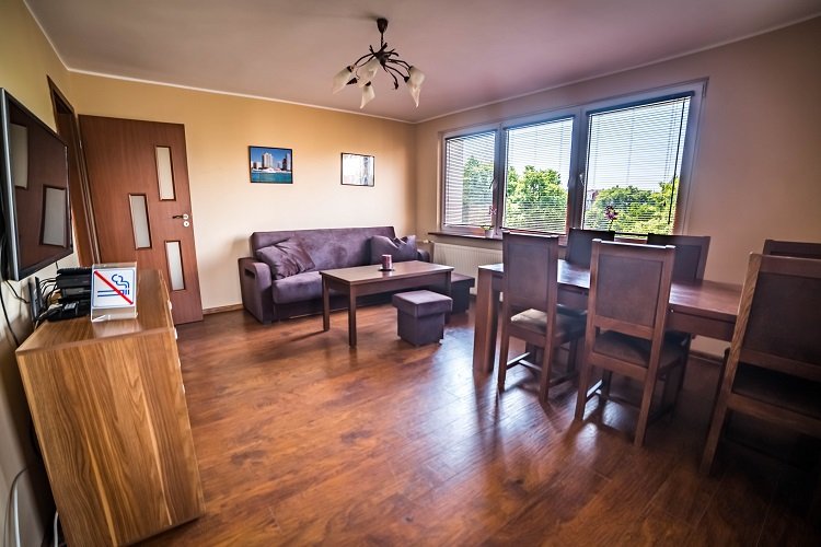 Lejligheden er på 55 m2 og ligger i centrum af Stettin/Szczecin i et af de bedste kvarterer. Lejligheden er total nyrenoveret og indeholder køkken med alt udstyr, et moderne badeværelse, separat toilet, to soveværelser og en stor opholdstue/spisestue. Fra stuen er der udgang til balkonen (til rygerne). Der er desuden Smart TV (ca. 140 kanaler med næsten 60 kanaler på engelsk og internet applikationer, herunder YouTube) og DVD-afspiller med masser af film på engelsk, dansk, norsk og enkelte på tysk samt undertekster på forskellige sprog. Der er også trådløs Internet adgang.