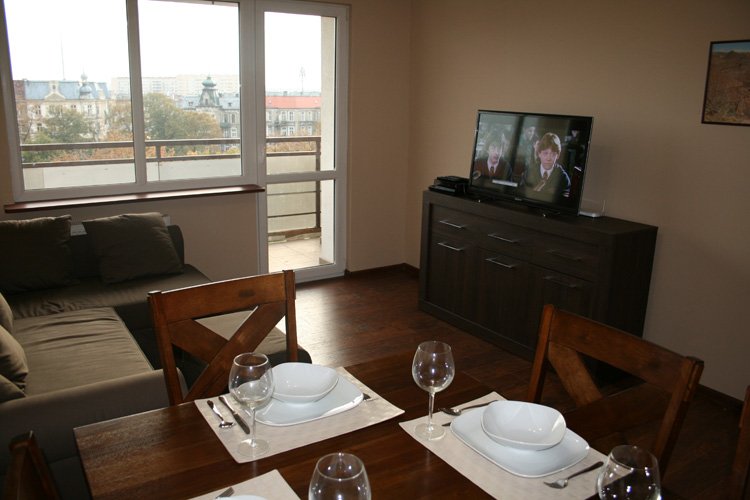 Lejligheden er på 46 m2 og ligger i centrum af Stettin i et af de bedste kvarterer. Lejligheden er total nyrenoveret og indeholder køkken med alt udstyr, et moderne badeværelse, et soveværelser og en stor opholdstue/spisestue. Fra stuen er der udgang til balkonen (til rygerne). Der er dyner, sengetøj og håndklæder til 4 personer. Der er desuden Smart TV (ca. 140 kanaler med næsten 60 kanaler på engelsk og internet applikationer, herunder YouTube) og DVD-afspiller med masser af film på engelsk, dansk, norsk og enkelte på tysk samt undertekster på forskellige sprog. Der er også trådløs Internet adgang.