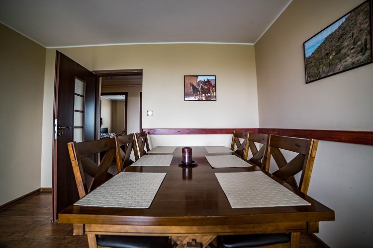 Prisen er for 1-4 personer. Er I flere personer er det muligt af få to madrasser sat til rådighed for et tillæg på 50,00 PLN pr. person pr. dag, således at 6 personer kan overnatte i lejligheden.