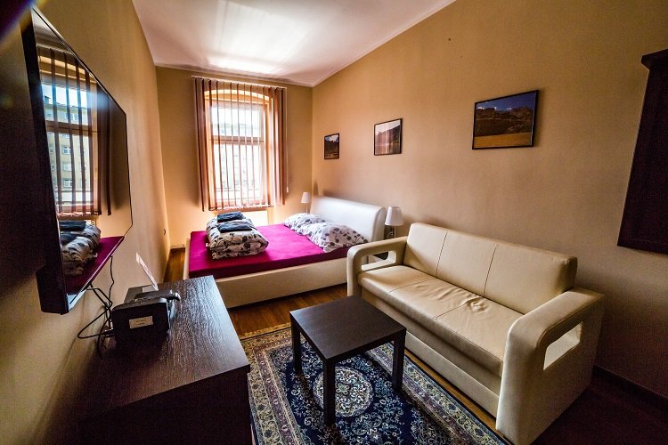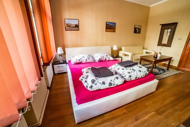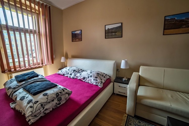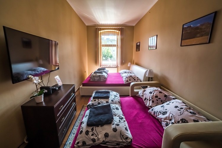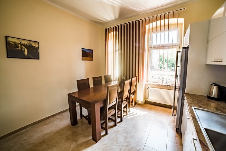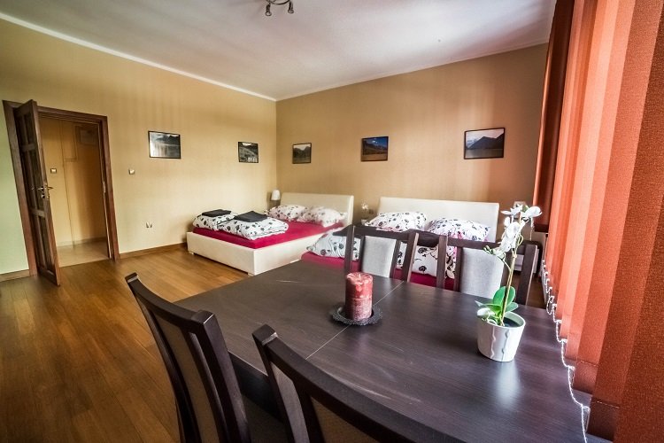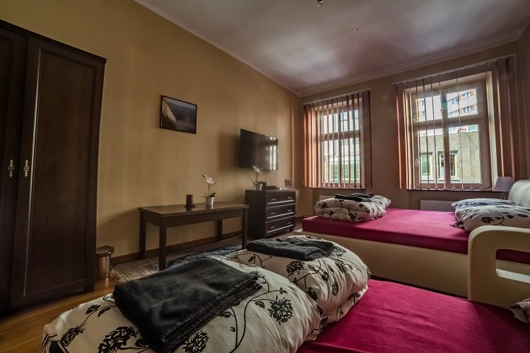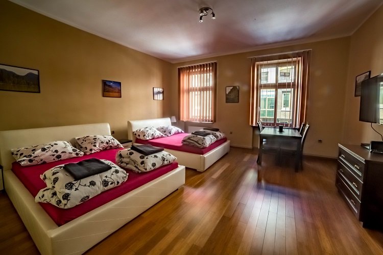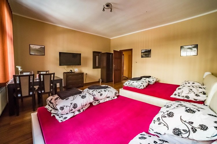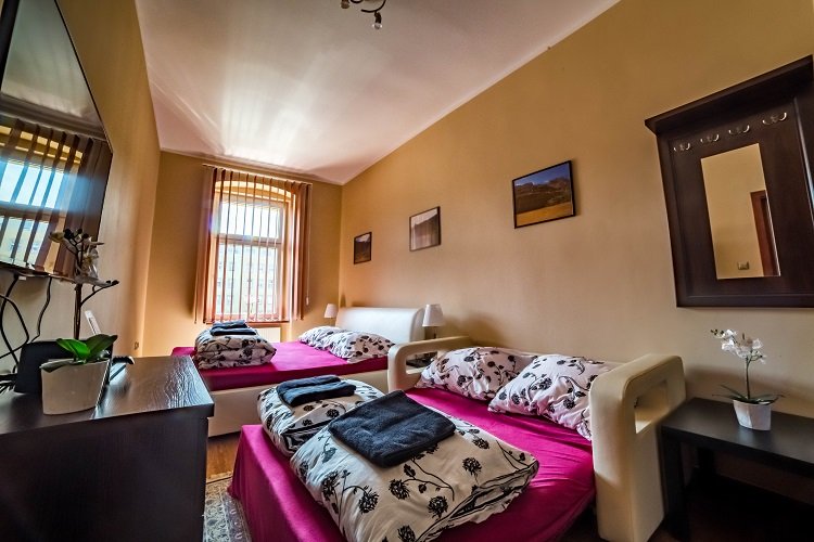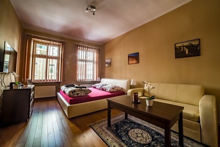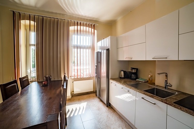 Lejligheden er på 100 m2 og ligger i centrum af Stettin i et af de bedste kvarterer. Lejligheden er total nyrenoveret og indeholder køkken med alt udstyr, moderne badeværelse samt 3 store soveværelser/suites til 4 personer, som hver har egen opholdstue med Smart TV. Stort fælles køkken. Der er dyner, sengetøj og håndklæder til 12 personer. Der er desuden Smart TV (ca. 140 kanaler med næsten 60 kanaler på engelsk og internet applikationer, herunder YouTube) og DVD-afspiller med masser af film på engelsk, dansk, norsk og enkelte på tysk, fransk, italiensk og spansk samt undertekster på forskellige sprog. Der er også trådløs Internet adgang.